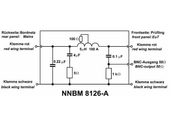NNBM 8126-A 890單線汽車電子線性阻抗穩(wěn)定網(wǎng)絡(luò)應(yīng)用:非對(duì)稱單線人工電源網(wǎng)絡(luò)(LISN)NNBM 8126-A 890 的主要應(yīng)用于汽車、飛機(jī)、輪船在頻率范圍是(0.1)1 – 150MHz 的高頻到特高頻段的干擾電壓測(cè)量。該 LISN 是專門針對(duì) 890Hz 的電源板特別定制的,電壓最高可達(dá) 270V. 在這種極端條件下,LISN 電阻器必須具有良好的散熱,以應(yīng)對(duì)大功率損耗。因此,通常使用的汽車電子 LISN 不能用于高的電源頻率。阻抗特性滿足 CISPR 16 (5μH+ 5Ω//50Ω)和 DO 160. 連續(xù)電流額定值是 70 A,短時(shí) 100 A ,可按要求定制。被測(cè)物連接到前面板翼型端口。