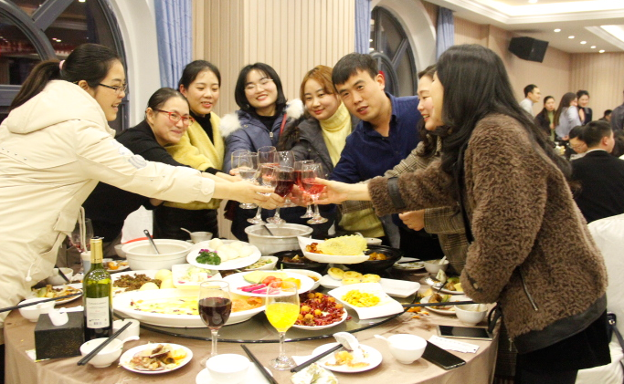 張總祝酒,大家高舉酒杯