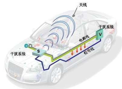 車內(nèi)干擾是指汽車電子設(shè)備工作時內(nèi)部的相互干擾,如發(fā)動機(jī)的點(diǎn)火系統(tǒng)、閃光器、觸點(diǎn)式電磁振動電喇叭、雨刮器、儀表系統(tǒng)等均會產(chǎn)生一定的傳導(dǎo)干擾和輻射干擾電磁波。傳導(dǎo)干擾通過汽車導(dǎo)線直接輸入無線電設(shè)備和電子設(shè)備內(nèi)部,而輻射干擾則是在空間傳播,通過天線(如點(diǎn)火系高壓線就相當(dāng)于天線)輸入無線電設(shè)備內(nèi)部,進(jìn)而影響電子電器設(shè)備的正常工作。