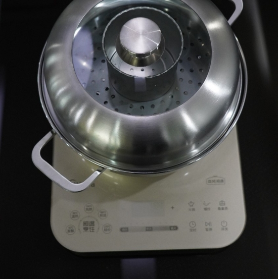 此外,美的恒溫爐有著超大188mm線圈盤,可以提供200W-2100W持續(xù)不間斷加熱的恒勻火技術,更能支持304復合厚底多用鍋具。