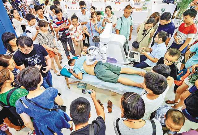在智博會現(xiàn)場,可以看到滿頭銀發(fā)的老者,也能看到稚氣未脫的孩子們。有穿著制服的上班族,也有穿著時尚的帥哥美女。他們在各類高科技產(chǎn)品面前,專注又驚喜。